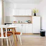每个房间都有厨房,配有休息区 和纯平电视。